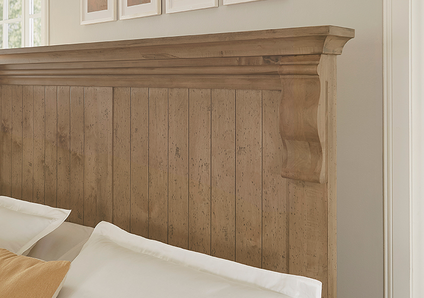 The Corbel Bed is highlighted by a generous 3 inch thick cap rail and 5 inch bed post accented with a beautifully shaped Corbel motif crafted from Solid Maple. Earthiness and rich warmth gives the warm natural finish a polished look of authenticity.
