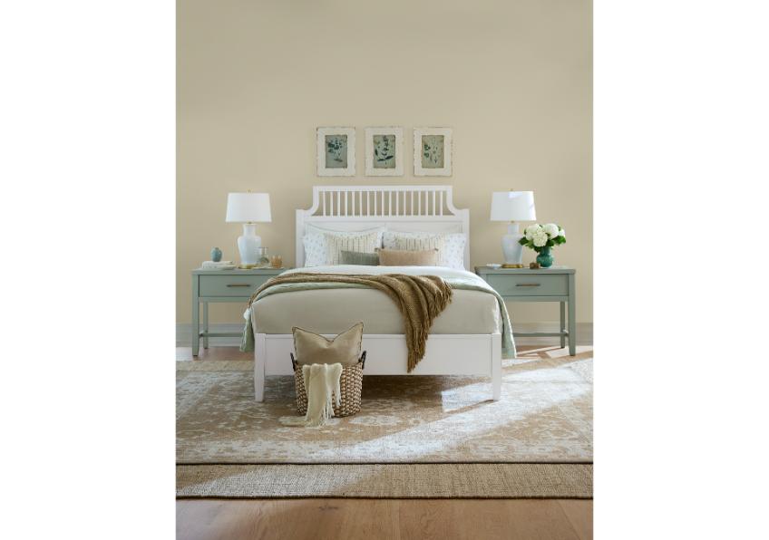 The Garden Bed with its tall headboard adds grace; while the crisp white finish reflects light and creates a calming feel. Paired with soft sage accents; it balances fresh modern design with timeless cottage character; inviting relaxed; restorative nights.