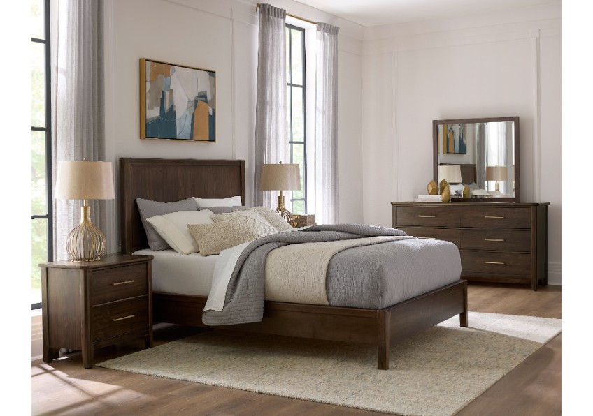 The Panel Bed’s bold walnut grain adds warmth; while the sleek frame provides strength and stability.