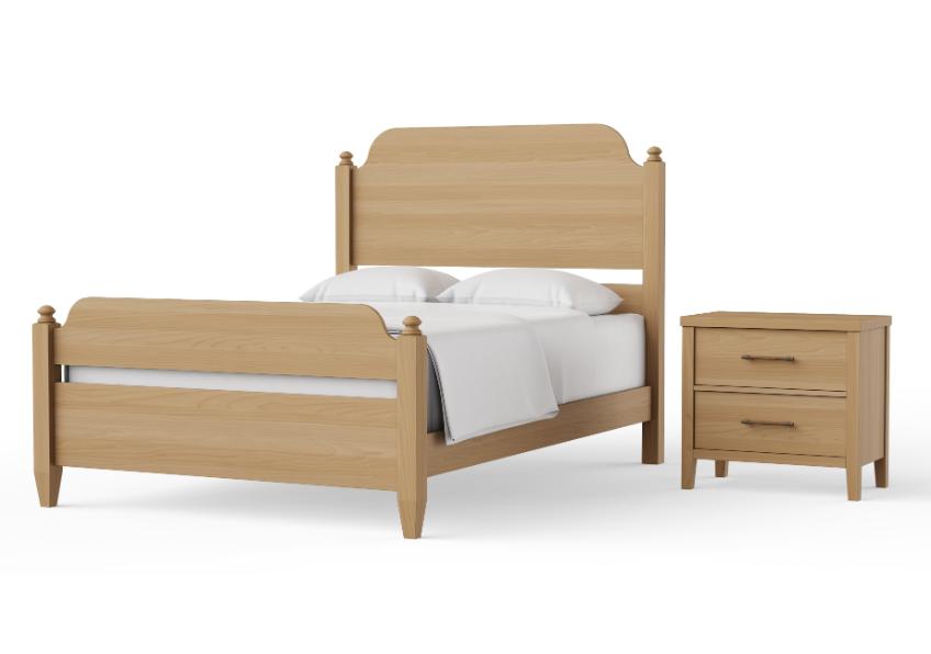 This timeless bed; finished in Natural Maple; showcases the natural beauty of solid maple; radiating inviting warmth. Graceful posts contribute to a laid-back cottage feel.